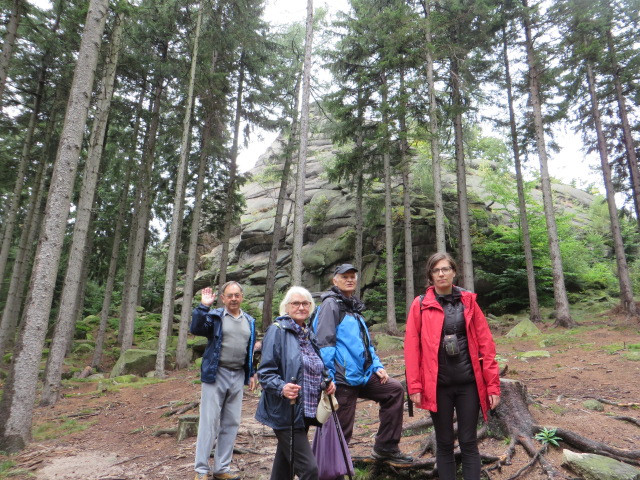 Wycieczka w Rudawy Janowickie 18-09-21 była kolejną wrześniową wyprawą Gwarków. Z Janowic Wielkich ruszamy żółtym szlakiem wzdłuż potoku Janówka. Za skałami Krowiarkami zielonym i niebieskim szlakiem idziemy do Starościńskich Skał. Wybitna grupa skalna: Starościńska Igła, Nosorożec, Skała z Lwem, Widokowa (szkoda że skała księżnej Marii Anny „Marianenfels” jest już bez napisu , a żeliwna figura lwa została przeniesiona nad Jezioro Złotnickie). Dalej mijając skały Piec, Skalny Most i Skałę Urwistą dochodzimy do Zamku Bolczów. Wybudowany przed 1375 r., zniszczony podczas Wojen Husyckich następnie odbudowany i podczas Wojny Trzydziestoletniej ponownie zniszczony i od 1645 r. pozostaje trwałą ruiną. Na trasach był duży ruch, turyści licznie wędrowali, bo przecież Rudawy są cudowne.