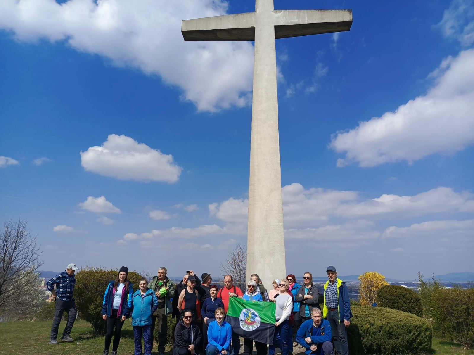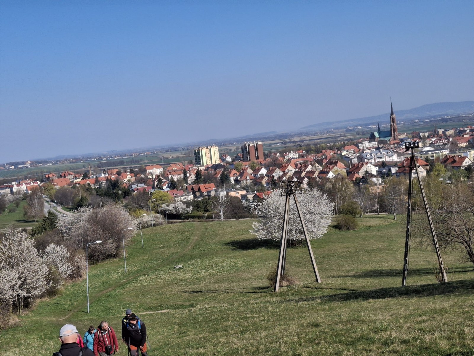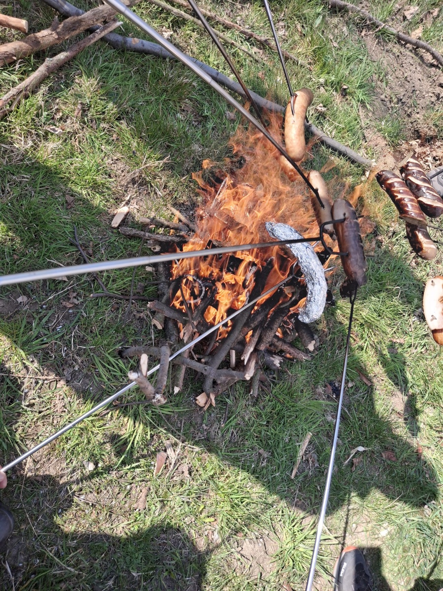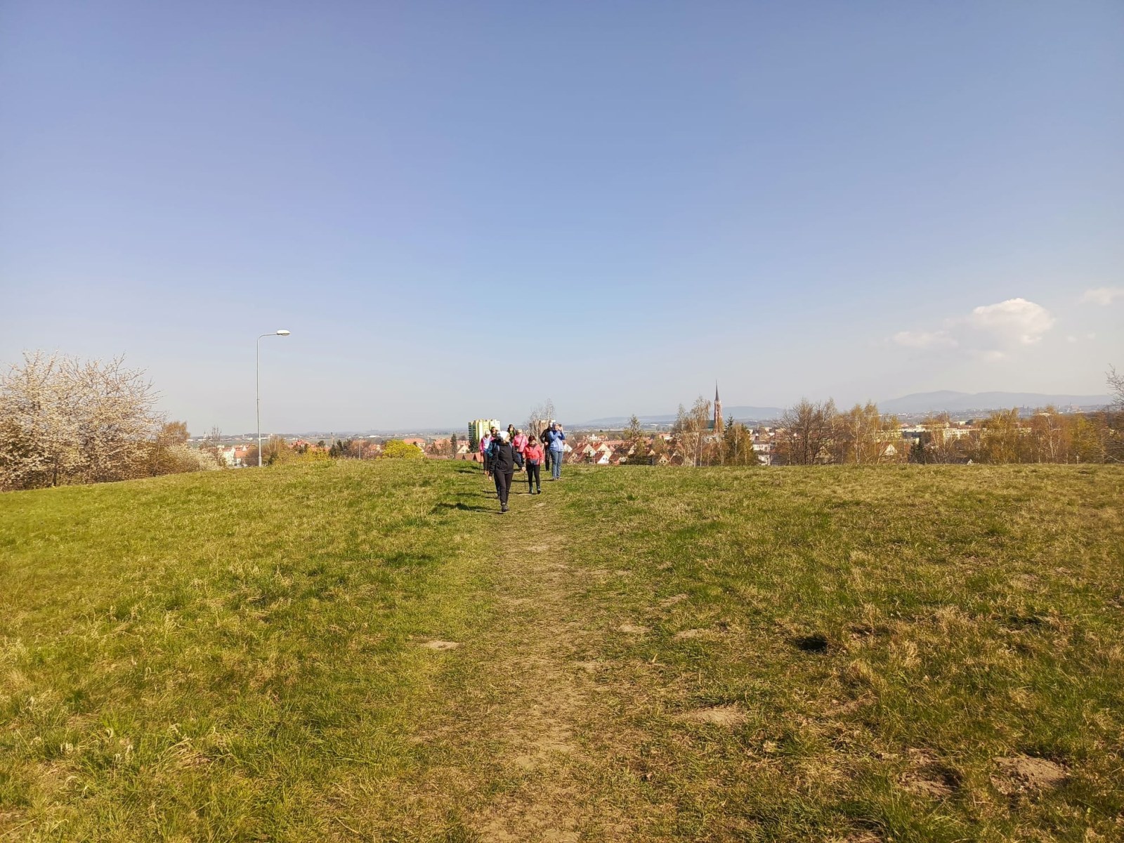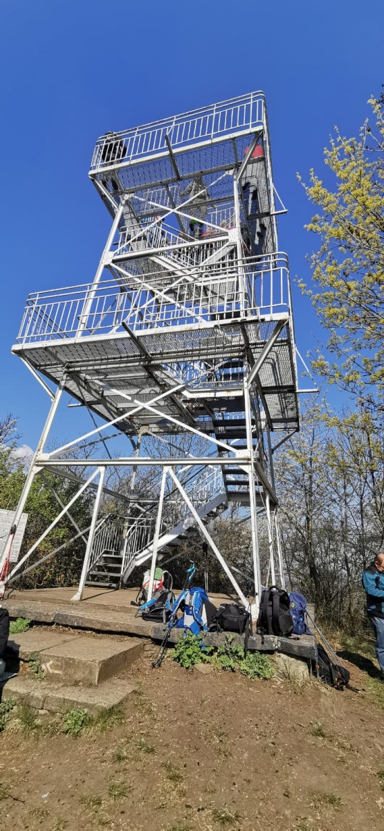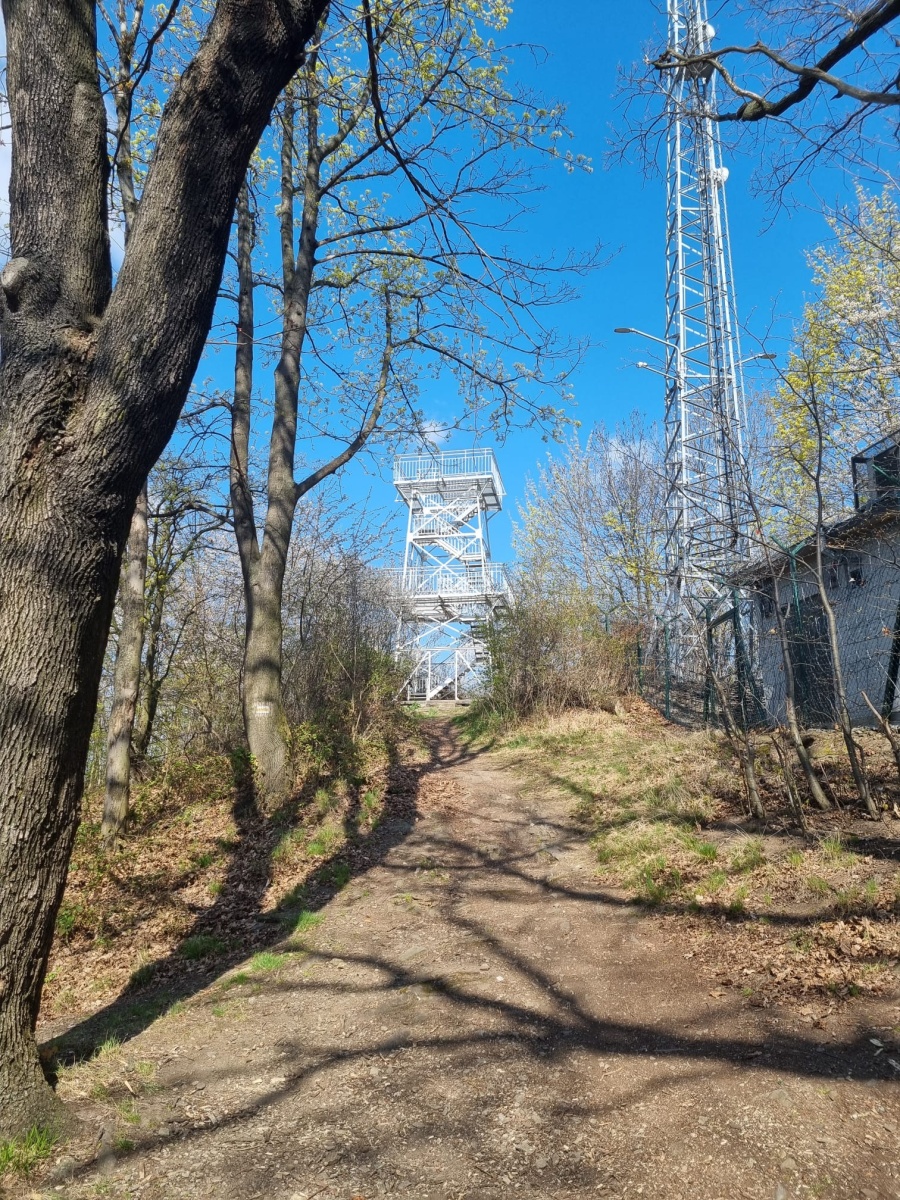 W sobotę, 11 kwietnia 2026 roku 23 osoby wędrowały po Wzgórzach Bielawskich. Najpierw było dość męczące podejście żółtym szlakiem na szczyt Parkowej Góry. Na szczycie biała wieża widokowa i miejsce odpoczynku. Góra Parkowa (nazywana też Panek) to najwyższy szczyt Wzgórz Bielawskich. Z Parkowej Góry zeszliśmy podziwiać „Skałę Schenka” – małą skałkę z wyrytym nazwiskiem „Georg Schenk” – dawny właściciel tych terenów. Od Skały Schenka, wciąż żółtym szlakiem wędrowaliśmy w lesie mieszanym pomiędzy kolejnymi wzgórzami – aż do Przełęczy pod Wroną. Tu znaleźliśmy śmieszne „platformy widokowe” czyli małe drewniane podesty na skraju lasu. Z jednego widać było świetnie Góry Sowie i Góry Bardzkie, a z drugiego – nazywanego „Niebiańskie Widoki” – była doskonale widoczna Bielawa oraz odległy Masyw Ślęży. Dalej przez wioskę Myśliszów do Wzgórza Pojednania z Krzyżem Millenijnym. Na Wzgórzu Pojednania zapaliliśmy małe ognisko, upiekliśmy kiełbaski i odpoczęliśmy solidnie. Po pamiątkowych zdjęciach powędrowaliśmy do Stawu „Cegielnia” i dalej na parking w Bielawie, gdzie zakończył się ten spacer.