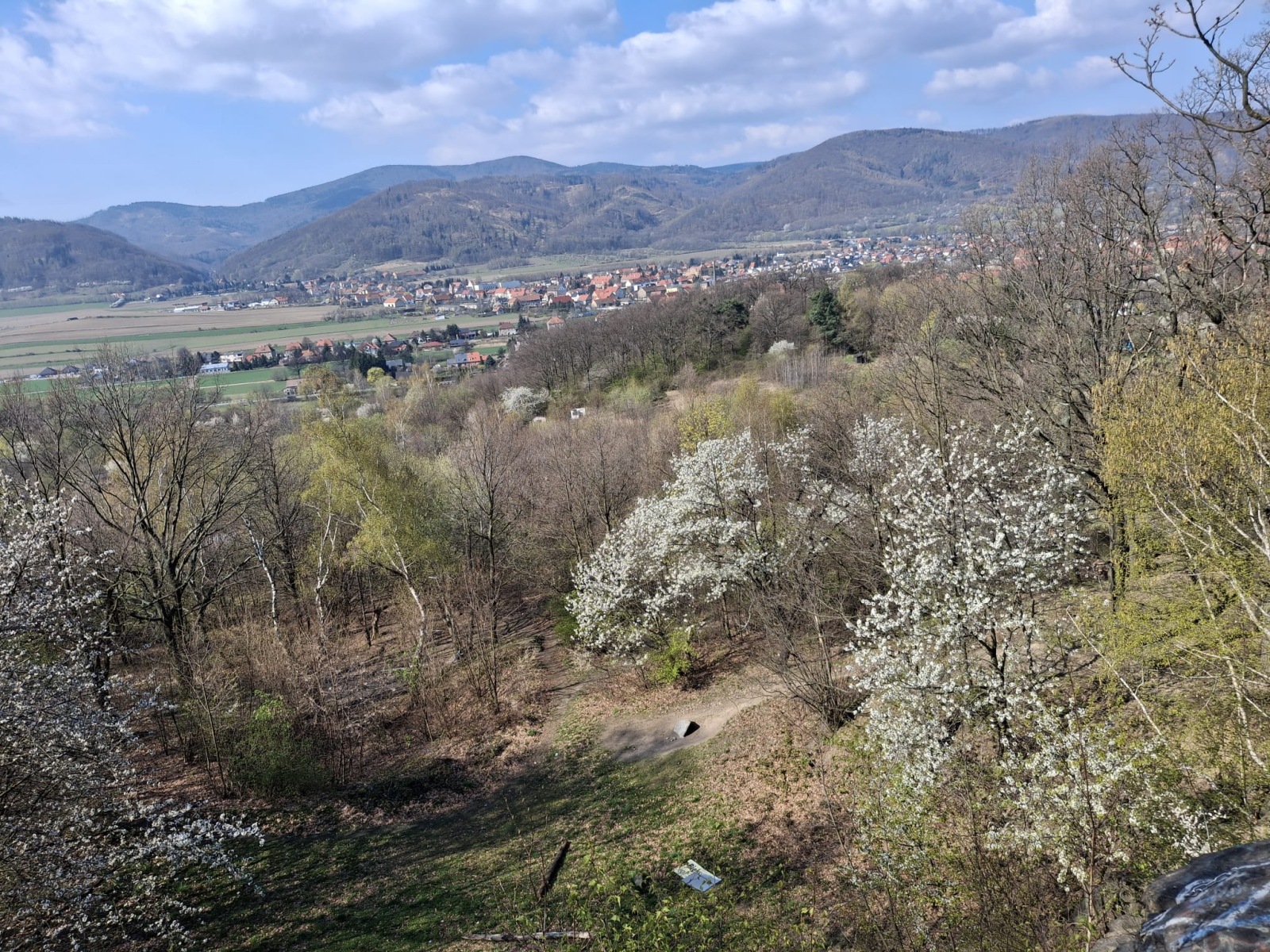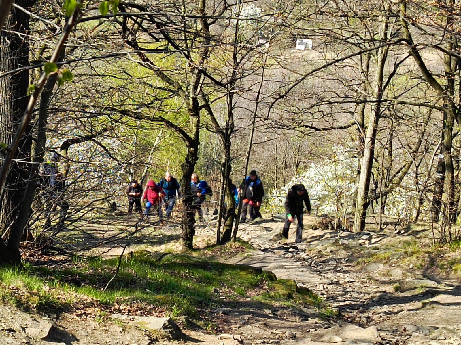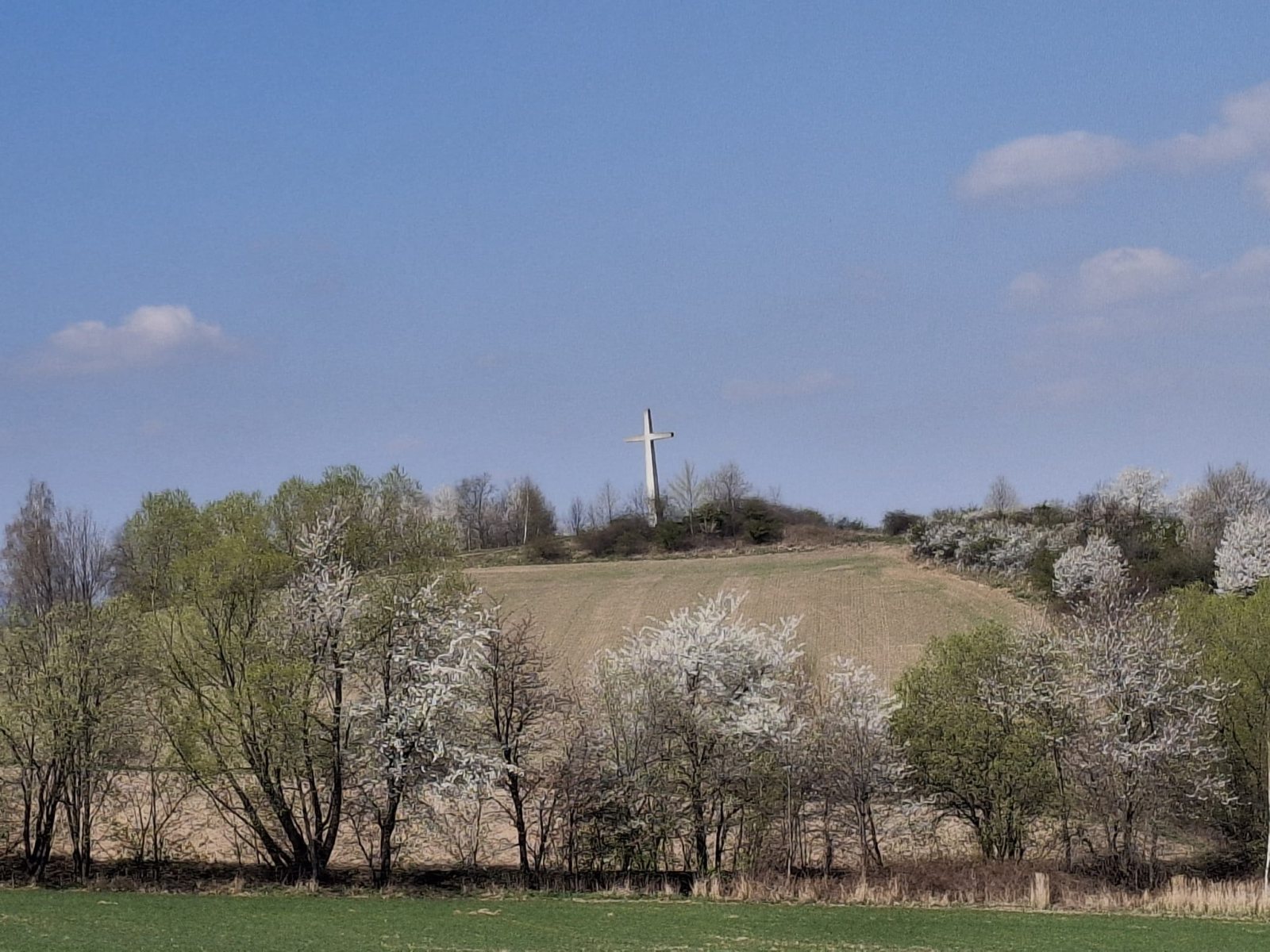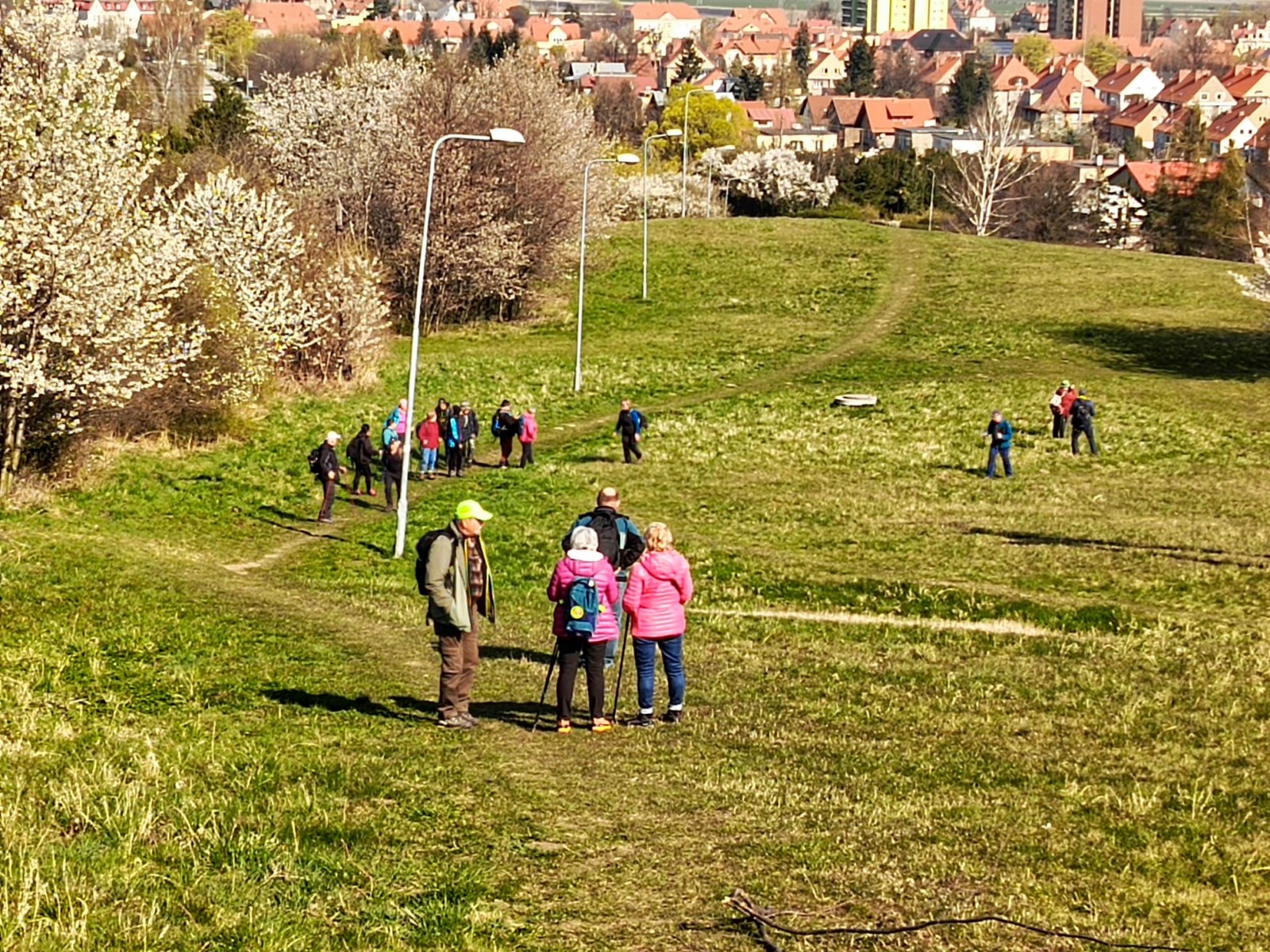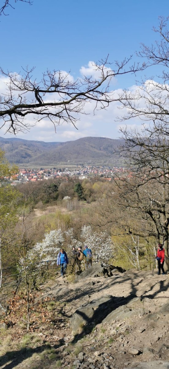 W sobotę, 11 kwietnia 2026 roku 23 osoby wędrowały po Wzgórzach Bielawskich. Najpierw było dość męczące podejście żółtym szlakiem na szczyt Parkowej Góry. Na szczycie biała wieża widokowa i miejsce odpoczynku. Góra Parkowa (nazywana też Panek) to najwyższy szczyt Wzgórz Bielawskich. Z Parkowej Góry zeszliśmy podziwiać „Skałę Schenka” – małą skałkę z wyrytym nazwiskiem „Georg Schenk” – dawny właściciel tych terenów. Od Skały Schenka, wciąż żółtym szlakiem wędrowaliśmy w lesie mieszanym pomiędzy kolejnymi wzgórzami – aż do Przełęczy pod Wroną. Tu znaleźliśmy śmieszne „platformy widokowe” czyli małe drewniane podesty na skraju lasu. Z jednego widać było świetnie Góry Sowie i Góry Bardzkie, a z drugiego – nazywanego „Niebiańskie Widoki” – była doskonale widoczna Bielawa oraz odległy Masyw Ślęży. Dalej przez wioskę Myśliszów do Wzgórza Pojednania z Krzyżem Millenijnym. Na Wzgórzu Pojednania zapaliliśmy małe ognisko, upiekliśmy kiełbaski i odpoczęliśmy solidnie. Po pamiątkowych zdjęciach powędrowaliśmy do Stawu „Cegielnia” i dalej na parking w Bielawie, gdzie zakończył się ten spacer.