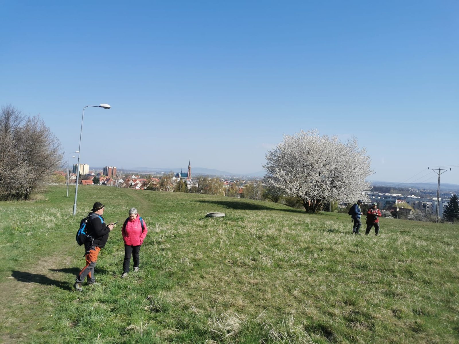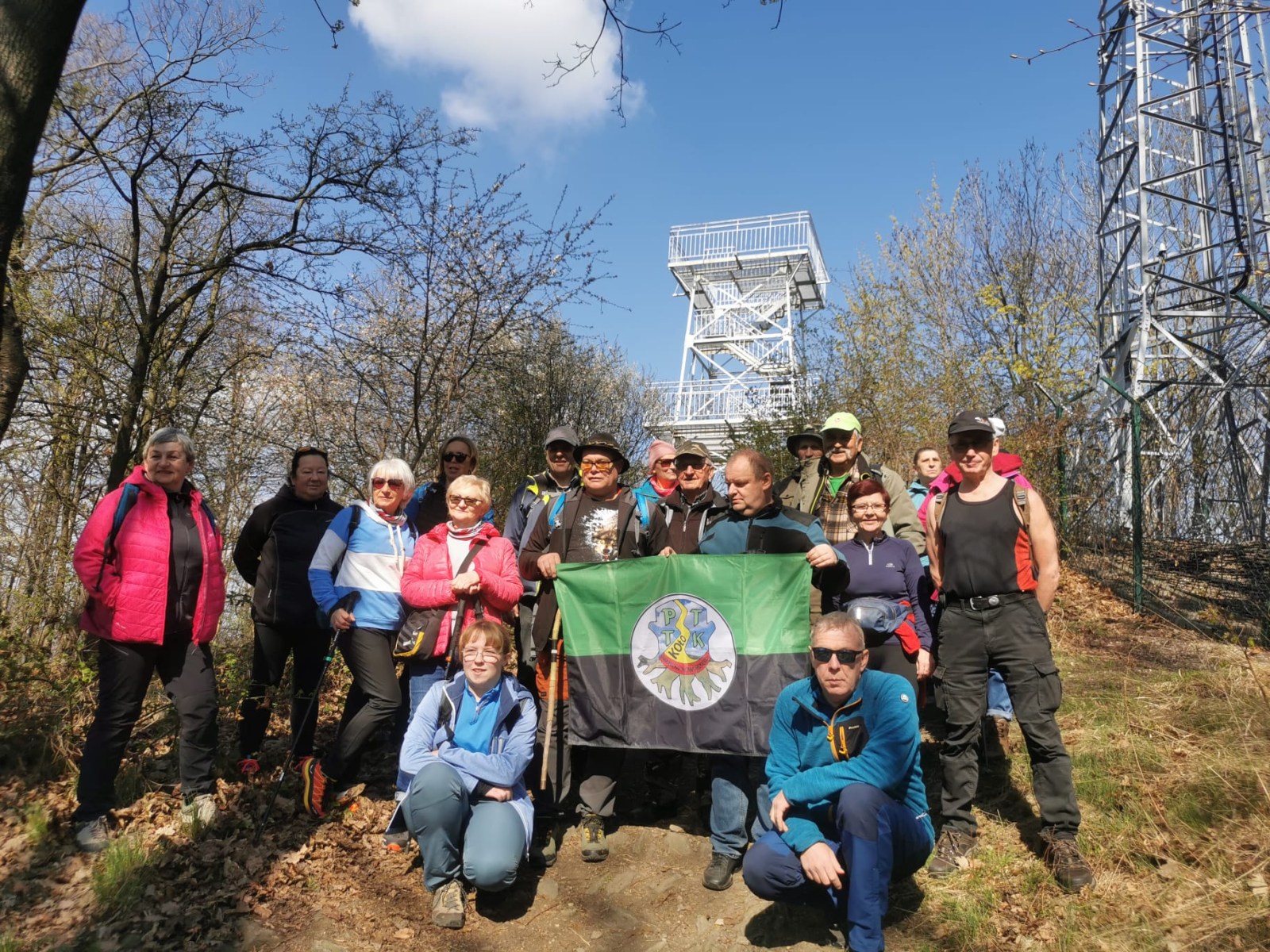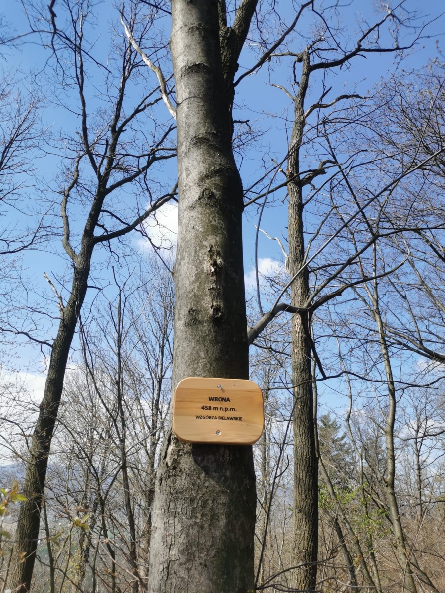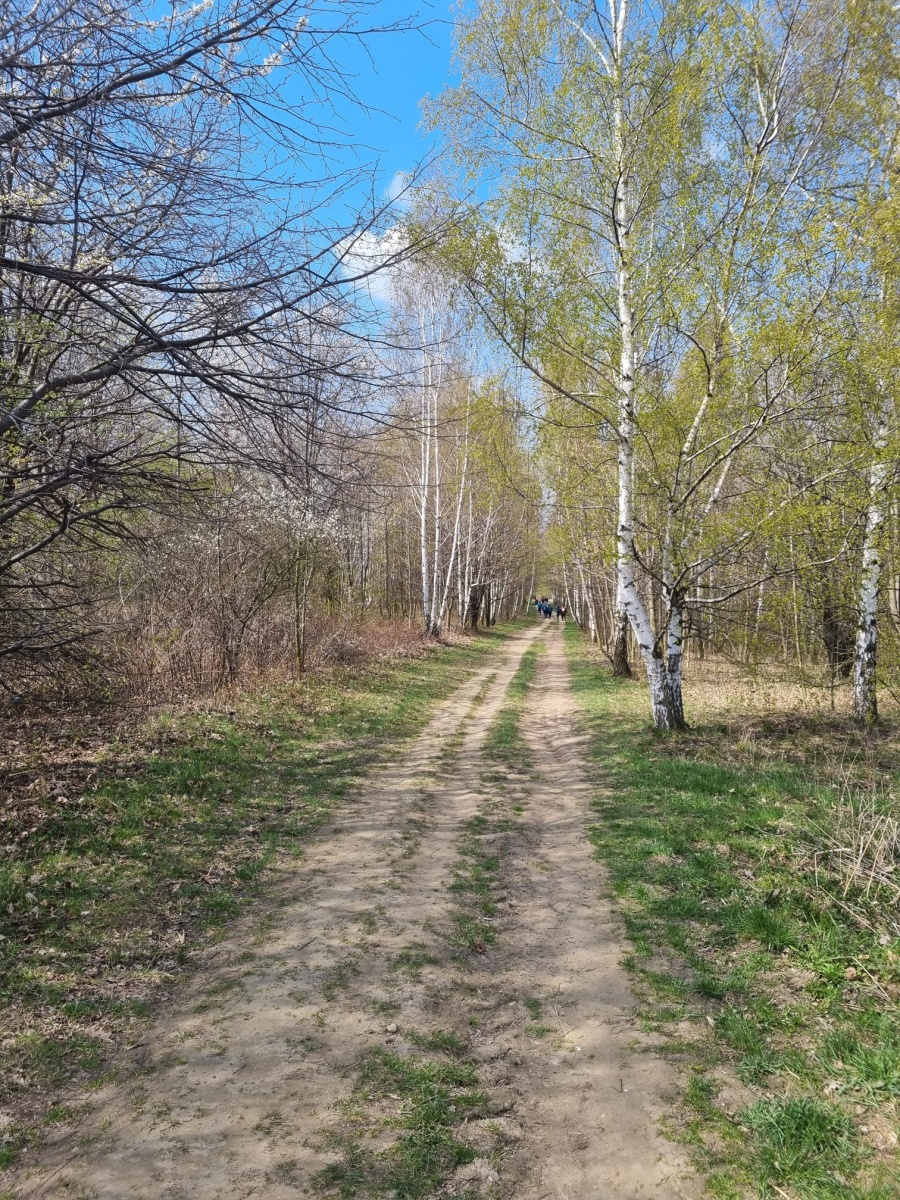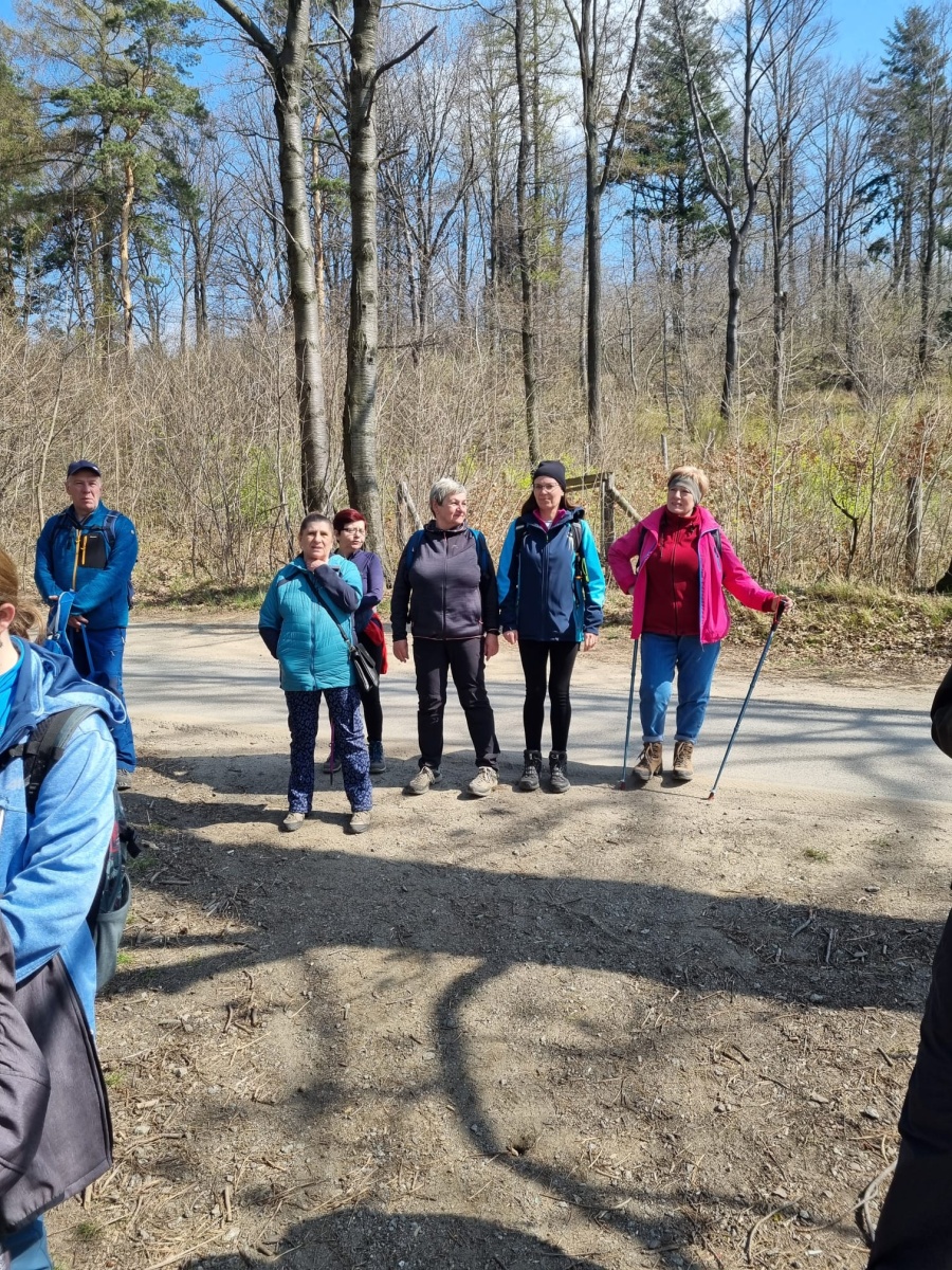 W sobotę, 11 kwietnia 2026 roku 23 osoby wędrowały po Wzgórzach Bielawskich. Najpierw było dość męczące podejście żółtym szlakiem na szczyt Parkowej Góry. Na szczycie biała wieża widokowa i miejsce odpoczynku. Góra Parkowa (nazywana też Panek) to najwyższy szczyt Wzgórz Bielawskich. Z Parkowej Góry zeszliśmy podziwiać „Skałę Schenka” – małą skałkę z wyrytym nazwiskiem „Georg Schenk” – dawny właściciel tych terenów. Od Skały Schenka, wciąż żółtym szlakiem wędrowaliśmy w lesie mieszanym pomiędzy kolejnymi wzgórzami – aż do Przełęczy pod Wroną. Tu znaleźliśmy śmieszne „platformy widokowe” czyli małe drewniane podesty na skraju lasu. Z jednego widać było świetnie Góry Sowie i Góry Bardzkie, a z drugiego – nazywanego „Niebiańskie Widoki” – była doskonale widoczna Bielawa oraz odległy Masyw Ślęży. Dalej przez wioskę Myśliszów do Wzgórza Pojednania z Krzyżem Millenijnym. Na Wzgórzu Pojednania zapaliliśmy małe ognisko, upiekliśmy kiełbaski i odpoczęliśmy solidnie. Po pamiątkowych zdjęciach powędrowaliśmy do Stawu „Cegielnia” i dalej na parking w Bielawie, gdzie zakończył się ten spacer.