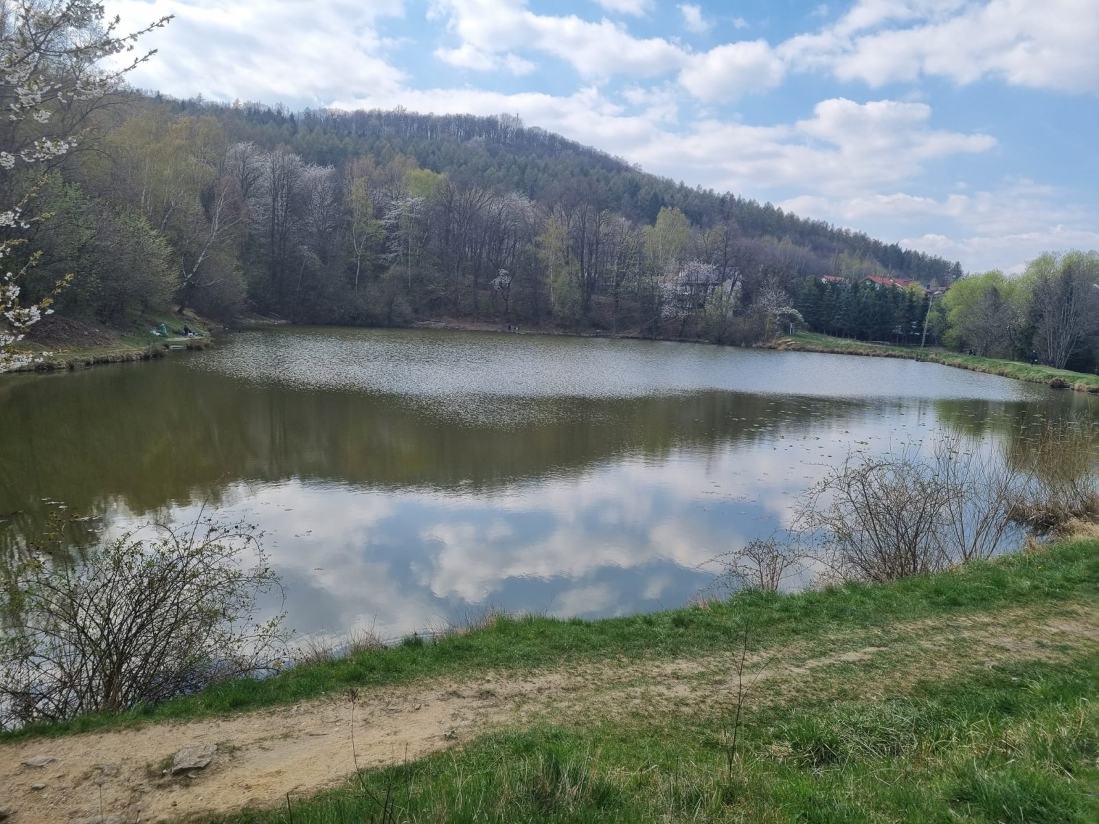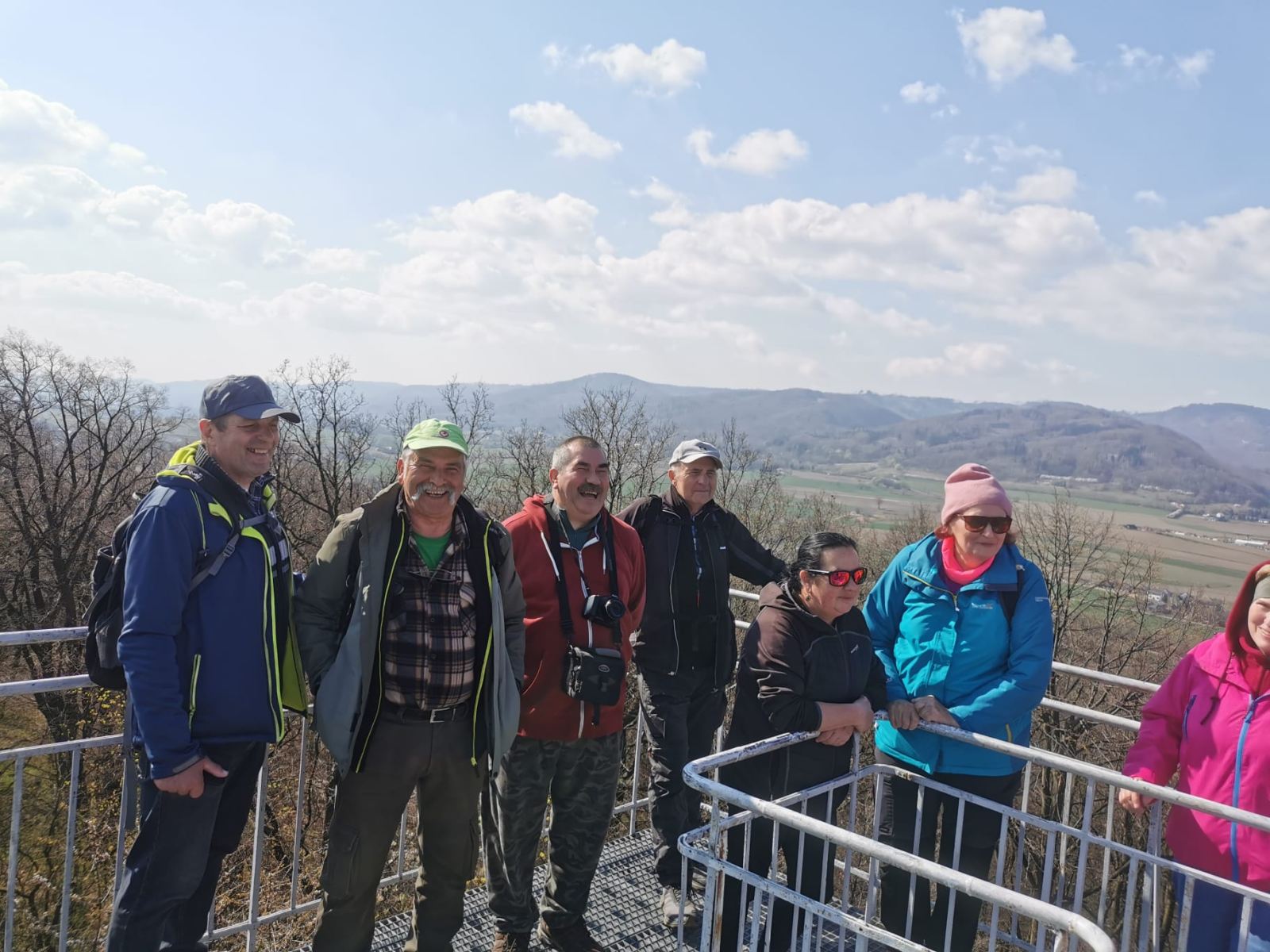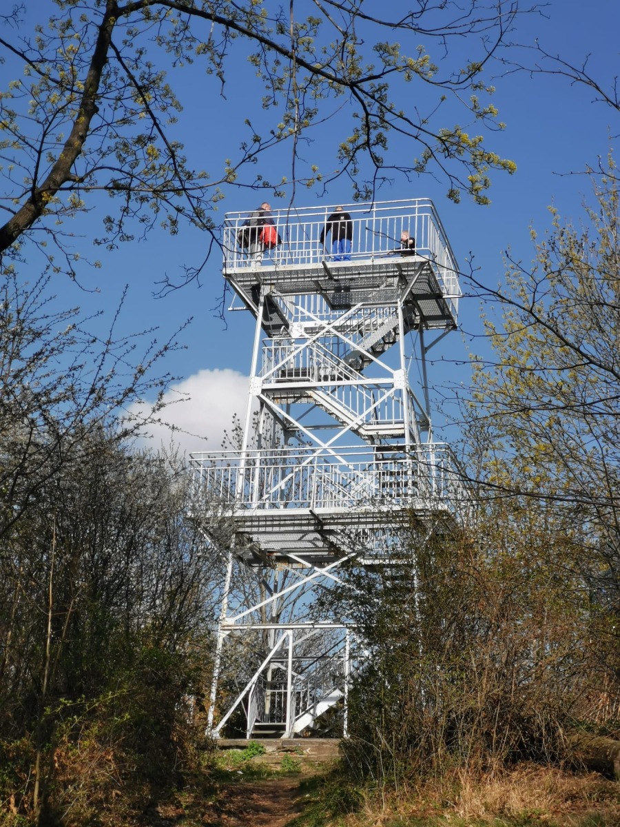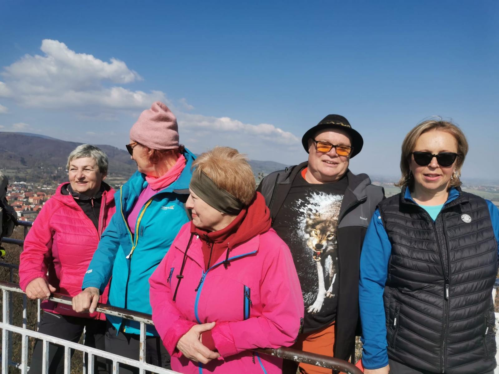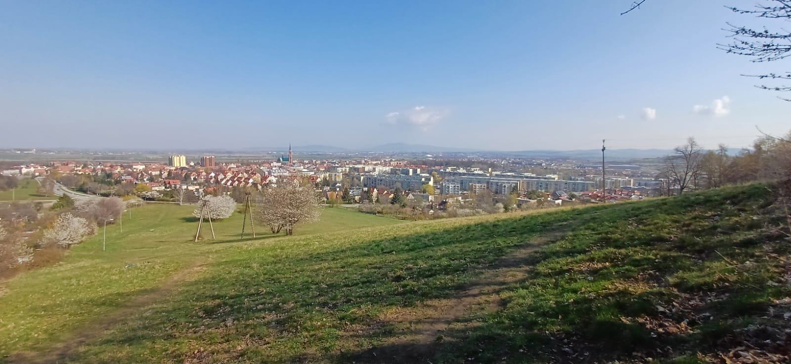 W sobotę, 11 kwietnia 2026 roku 23 osoby wędrowały po Wzgórzach Bielawskich. Najpierw było dość męczące podejście żółtym szlakiem na szczyt Parkowej Góry. Na szczycie biała wieża widokowa i miejsce odpoczynku. Góra Parkowa (nazywana też Panek) to najwyższy szczyt Wzgórz Bielawskich. Z Parkowej Góry zeszliśmy podziwiać „Skałę Schenka” – małą skałkę z wyrytym nazwiskiem „Georg Schenk” – dawny właściciel tych terenów. Od Skały Schenka, wciąż żółtym szlakiem wędrowaliśmy w lesie mieszanym pomiędzy kolejnymi wzgórzami – aż do Przełęczy pod Wroną. Tu znaleźliśmy śmieszne „platformy widokowe” czyli małe drewniane podesty na skraju lasu. Z jednego widać było świetnie Góry Sowie i Góry Bardzkie, a z drugiego – nazywanego „Niebiańskie Widoki” – była doskonale widoczna Bielawa oraz odległy Masyw Ślęży. Dalej przez wioskę Myśliszów do Wzgórza Pojednania z Krzyżem Millenijnym. Na Wzgórzu Pojednania zapaliliśmy małe ognisko, upiekliśmy kiełbaski i odpoczęliśmy solidnie. Po pamiątkowych zdjęciach powędrowaliśmy do Stawu „Cegielnia” i dalej na parking w Bielawie, gdzie zakończył się ten spacer.